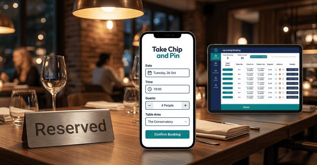 Create walk in bookings and accept table reservations online with the fully integrated Take Chip and Pin booking system. Designed specifically for hospitality, our solution gives you complete control over your reservations in one seamless platform.