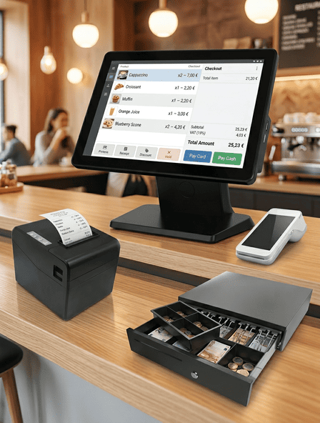 Serve tables faster, take orders instantly and process payments on the spot without returning to a fixed till. Designed for busy restaurants, cafés and bars that need flexibility, speed and complete control.